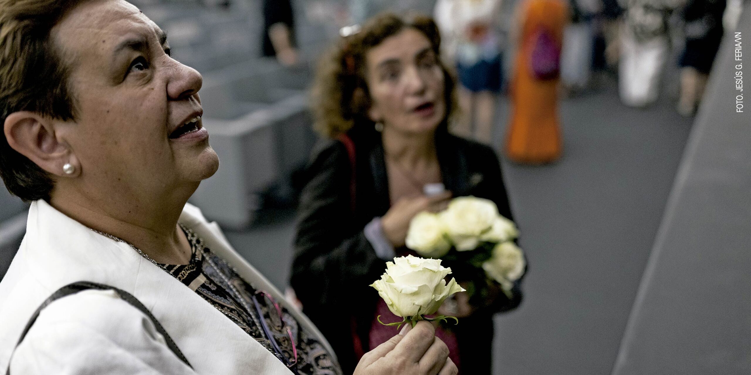 Cuando remitía el alboroto y el auditorio se vaciaba de tensión, comenzó a abrirse paso la reconciliación de quienes necesitaban compartir sus heridas de tú a tú. Y ahí estaba Toñi. Antonia López, provincial de las Adoratrices de Europa y África. Con la cercanía y la sencillez de quien tiene callo a la hora de acompañar a mujeres vulneradas, abrazaba ahora el dolor de varias víctimas que pasaron por centros regentados por su congregación, ligados al Patronato de Protección a la Mujer. Y entregó esa rosa blanca de la sanación que la bulla ninguneó. Rosa de acogida para iniciar un diálogo de tú a tú que no es nuevo ni para esta religiosa ni para su instituto de vida consagrada.