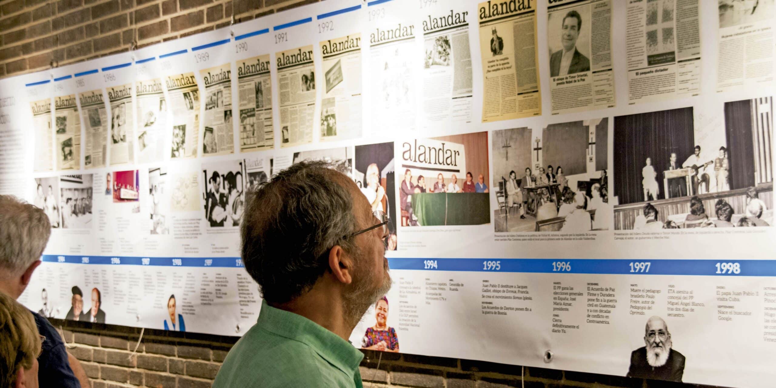 Cuarenta años de papel sirven ahora para dar testimonio de lo que fue y sigue siendo ‘Alandar’. “Al ver la cantidad tan ingente que había de material gráfico, de portadas, todo encuadernado y guardado, sobre todo la parte gráfica con originales de colaboradores tan eminentes que ha pasado por nuestras páginas, se nos ocurrió hacer esta exposición”, señala Álvarez Rivas. “Creímos que era esta la oportunidad de mostrar viñetas, ilustraciones, fotomontajes que hacía Carlos F. Barberá, por ejemplo. O sea, se ven cosas que fueron concebidas con el compromiso, con la esperanza y, por qué no decirlo, con la espiritualidad, una concepción para transformar la visión también del cristianismo, de la religiosidad y de la sociedad”.