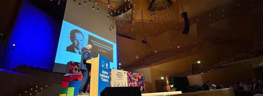 Tras el acto inaugural, dos ponentes iluminaron a los presentes en la Sala Mozart del Auditorio de Zaragoza: Gregorio Luri y Fernando Reimers. El filósofo Gregorio Luri planteó la necesidad de que la escuela cristiana sea un espacio en el que “la persona nunca es evidente” y donde se promueve “la relación entre lo posible y lo real”. A la par, puso sobre la mesa el valor moral del reconocimiento y el valor de la cultura común.