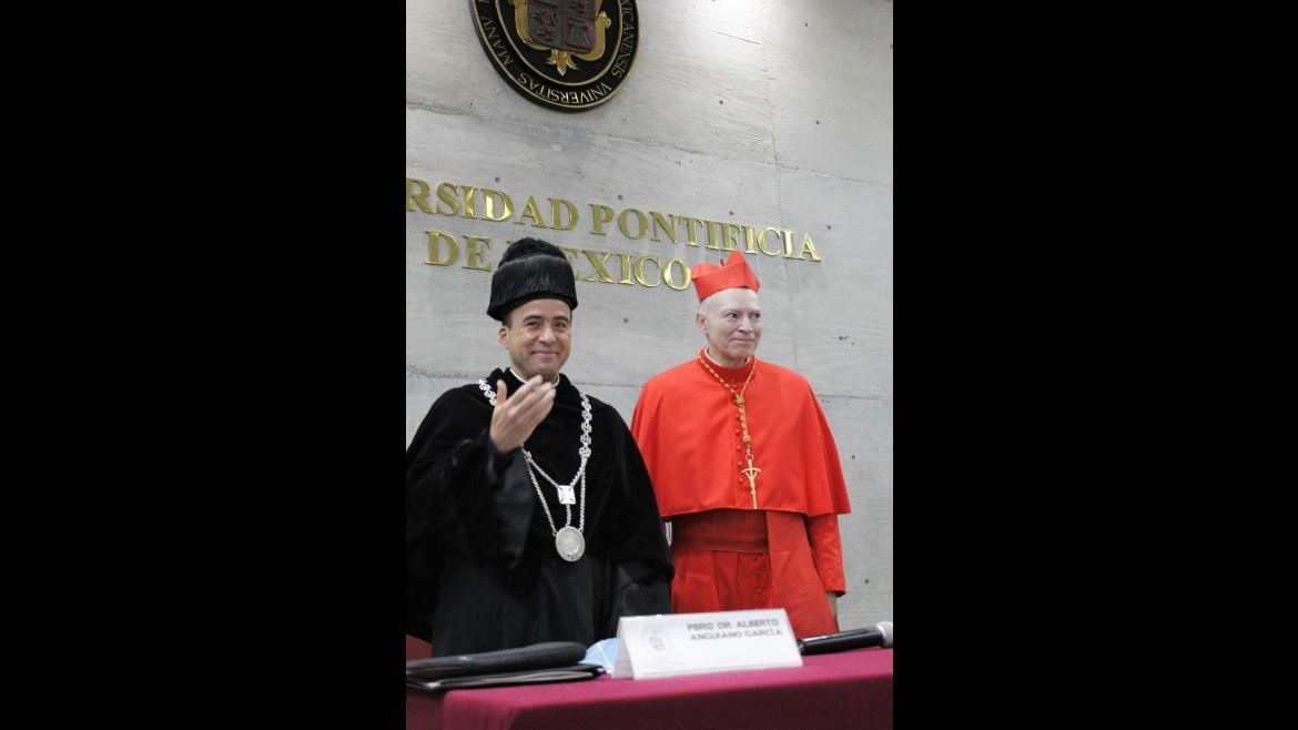 Padre Alberto Anguiano y cardenal Carlos Aguiar. Foto: Universidad Pontificia de México
