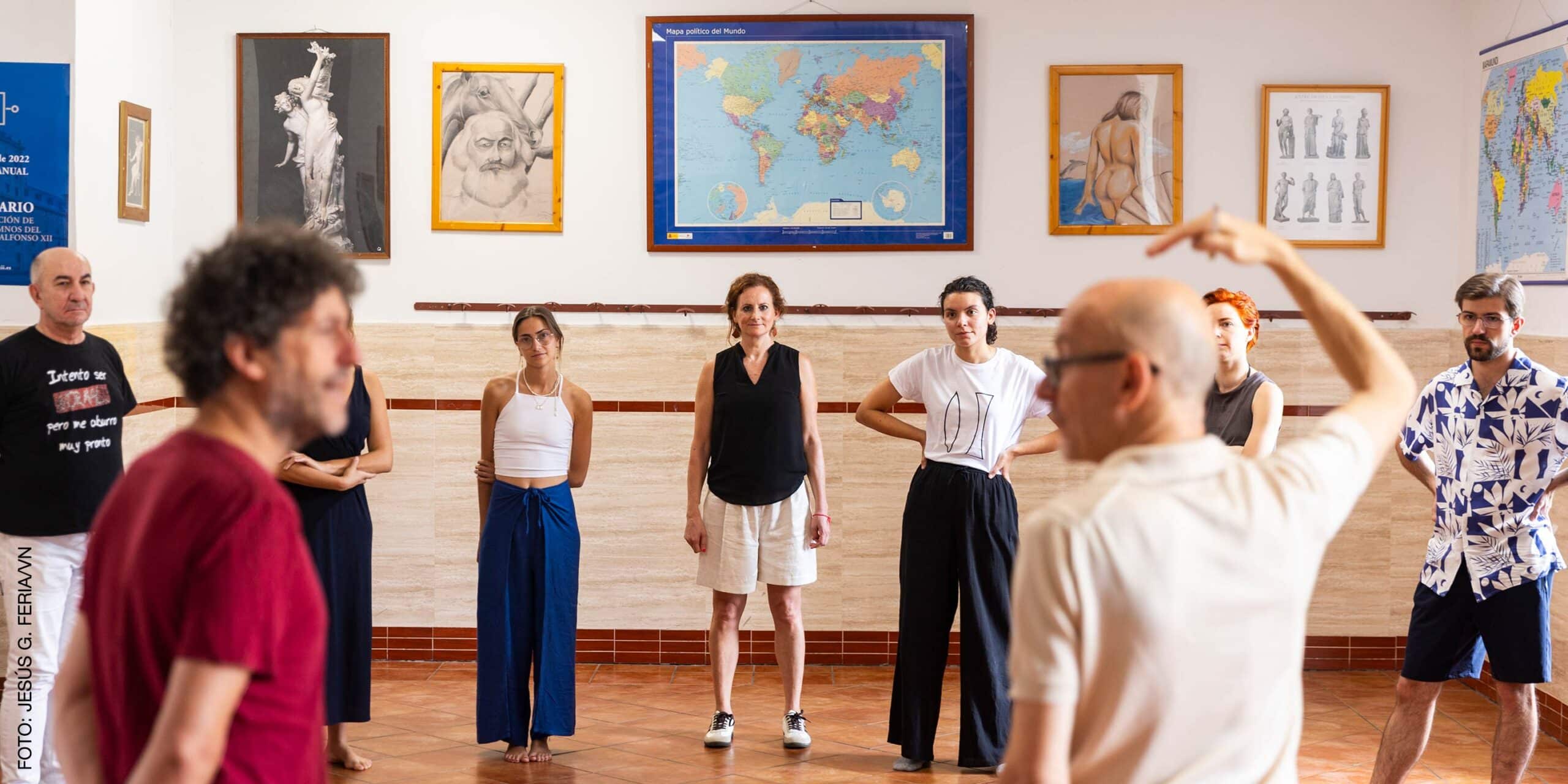 Los estudiantes de teatro se van encontrando con otra realidad, que quizás es la misma de siempre, pero el entorno, la compañía y los profesores hacen que sea única. Imparten el taller Jesús Barranco y Raúl Marcos. Llevan años de trabajo a la espalda y saben escuchar lo que el cuerpo dice… Por las ventanas se cuela la luz. Los alumnos están fuera, de la mano de san Juan de la Cruz, siempre una certera inspiración. Sus versos, sus experiencias, su vida… todo es aprendizaje y todo es acercamiento a la raíz.