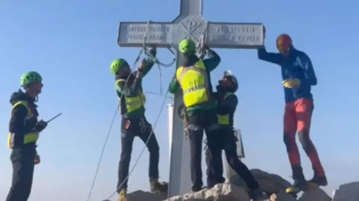 La cruz, una emblemática estructura de aluminio, ha sido izada de nuevo en la cima tras haber sido retirada en septiembre de 2023 para someterse a una profunda restauración. La tarea fue confiada al herrero Miguel Ángel Plaza, de Villanova.