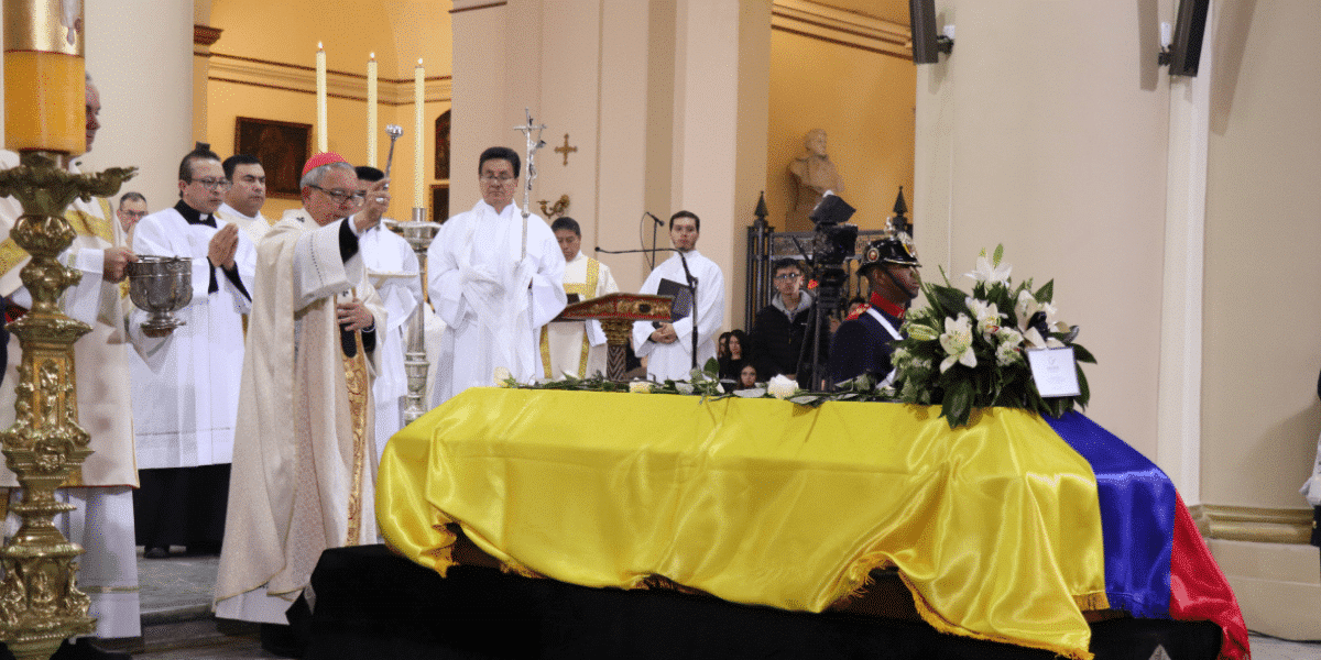 El cardenal Luis José Rueda, arzobispo de Bogotá, presidió la misa de exequias en la que participaron familia del joven líder, personalidades políticas, autoridades y diplomáticos