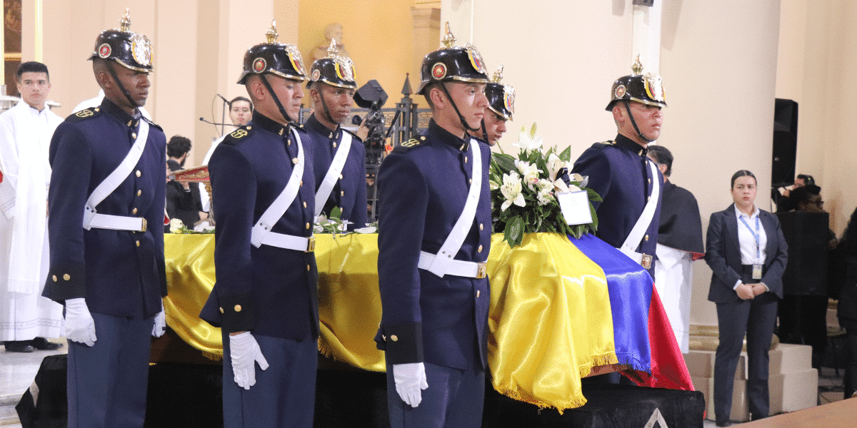 En la misa de exequias, presidida por el cardenal Luis José Rueda, arzobispo de Bogotá, participaron la familia del joven líder, personalidades políticas, autoridades y diplomáticos.
