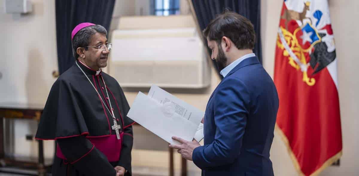 En una ceremonia realizada en el Palacio de La Moneda, el Presidente de la República, Gabriel Boric Font, recibió las Cartas Credenciales del nuevo Representante de la Santa Sede en Chile, Kurian Mathew Vayalunkal.