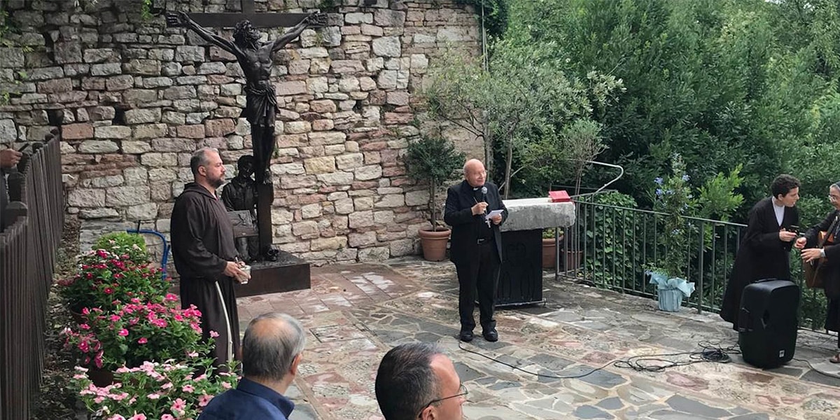 La estatua ha quedado colocada el 15 de agosto con la presencia de Domenico Sorrentino, obispo de las diócesis de Asís-Nocera Umbra-Gualdo Tadino y Folignoo, junto con el rector del Santuario, Marco Gaballo. El obispo invitó a todos “a rezar y abrazar con entusiasmo el gran milagro de fe y devoción”.
