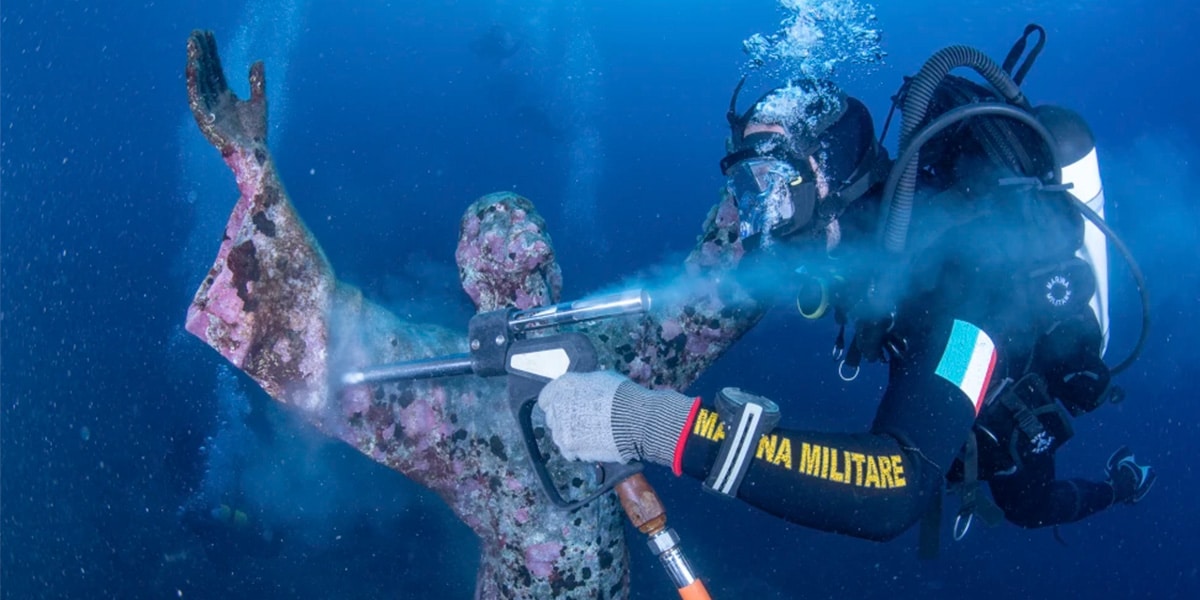 La limpieza de la escultura se realizada mediante hidrolavadoras de alta presión operadas por los buzos, que sirven para eliminar los organismos marinos adheridos al bronce de la estatua, con el fin de prevenir su deterioro –a pesar de que es uno de sus elementos más característicos–. Cabella explicó a la prensa local que “durante los primeros 50 años de la estatua en el agua, fue limpiada de forma indiscriminada con cepillos metálicos” y que “estos escarificaron el bronce creando al mismo tiempo microsurcos, donde los organismos marinos se han visto aún más invitados a arraigar”. De hecho, en 2004 la imagen fue restaurada a fondo en tierra. La responsable reconoció que también “hay un montón de peces maravillosos que vienen a mirar”, y que esta intervención es “una actividad con cero impacto en el medio ambiente”.