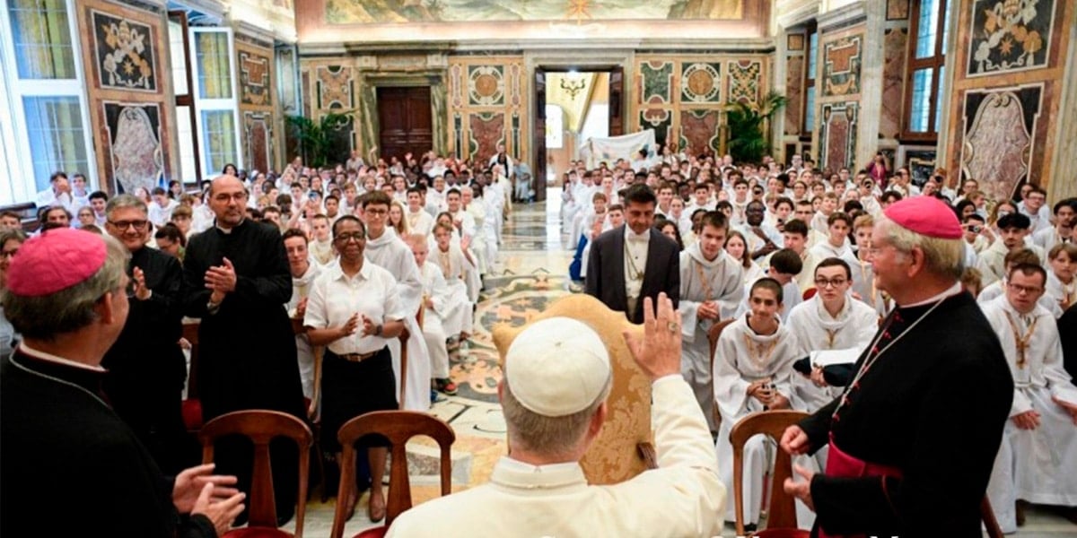 “Espero que estén atentos a la llamada que Jesús podría hacerles para seguirlo más de cerca en el sacerdocio y que puedan, poco a poco, domingo tras domingo, descubrir la belleza, la felicidad y la necesidad de una vocación así”, pidió el pontífice a los muchachos. A ellos también destacó que en la “vida tan maravillosa del sacerdote que, en el centro de cada uno de sus días, a través de la misa, encuentra a Jesús de una manera tan excepcional y lo dona al mundo”.