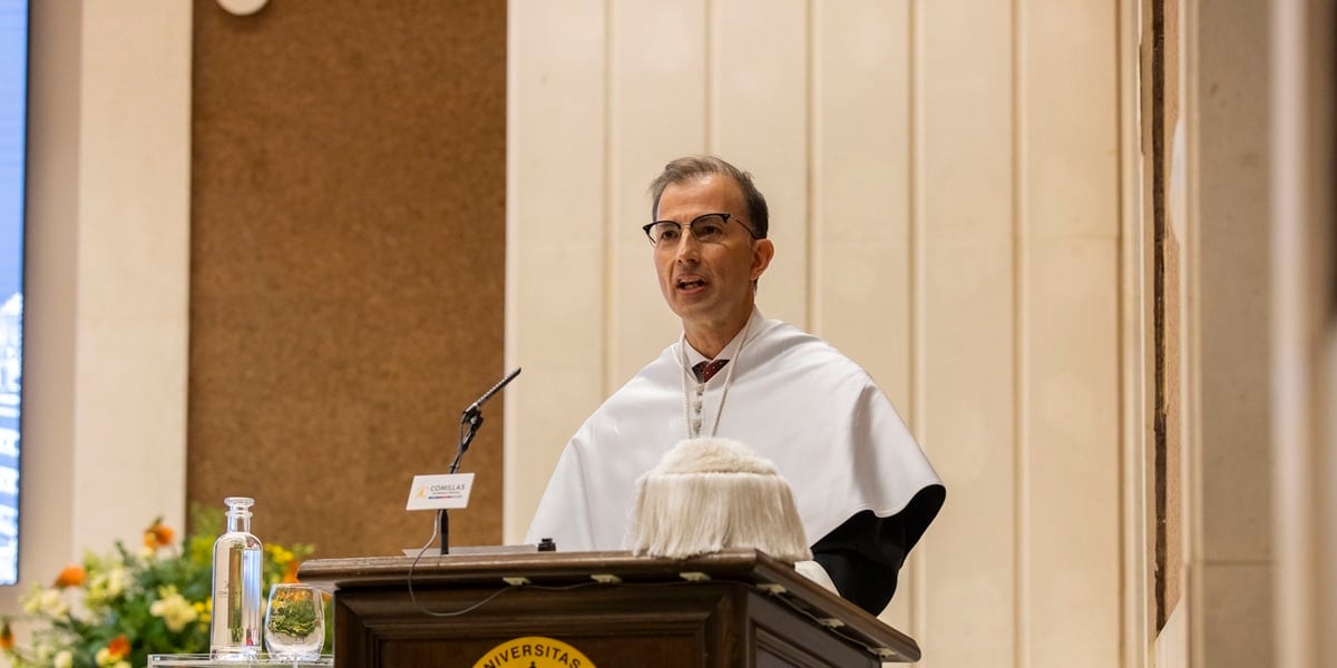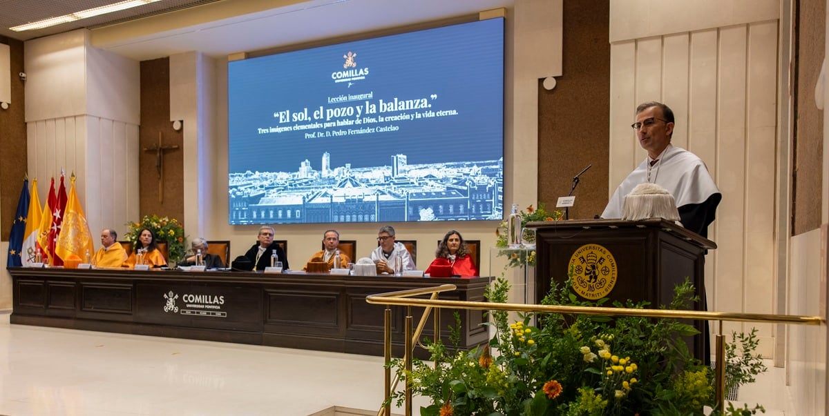 “Es necesario que busquemos, entre todos, un nuevo lenguaje para hablar de Dios”. Es el último encargo que lanzó este miércoles Pedro Fernández Castelao, al rematar la lección inaugural que pronunció en la apertura del curso académico 2025-2026 en la Universidad Pontificia Comillas.