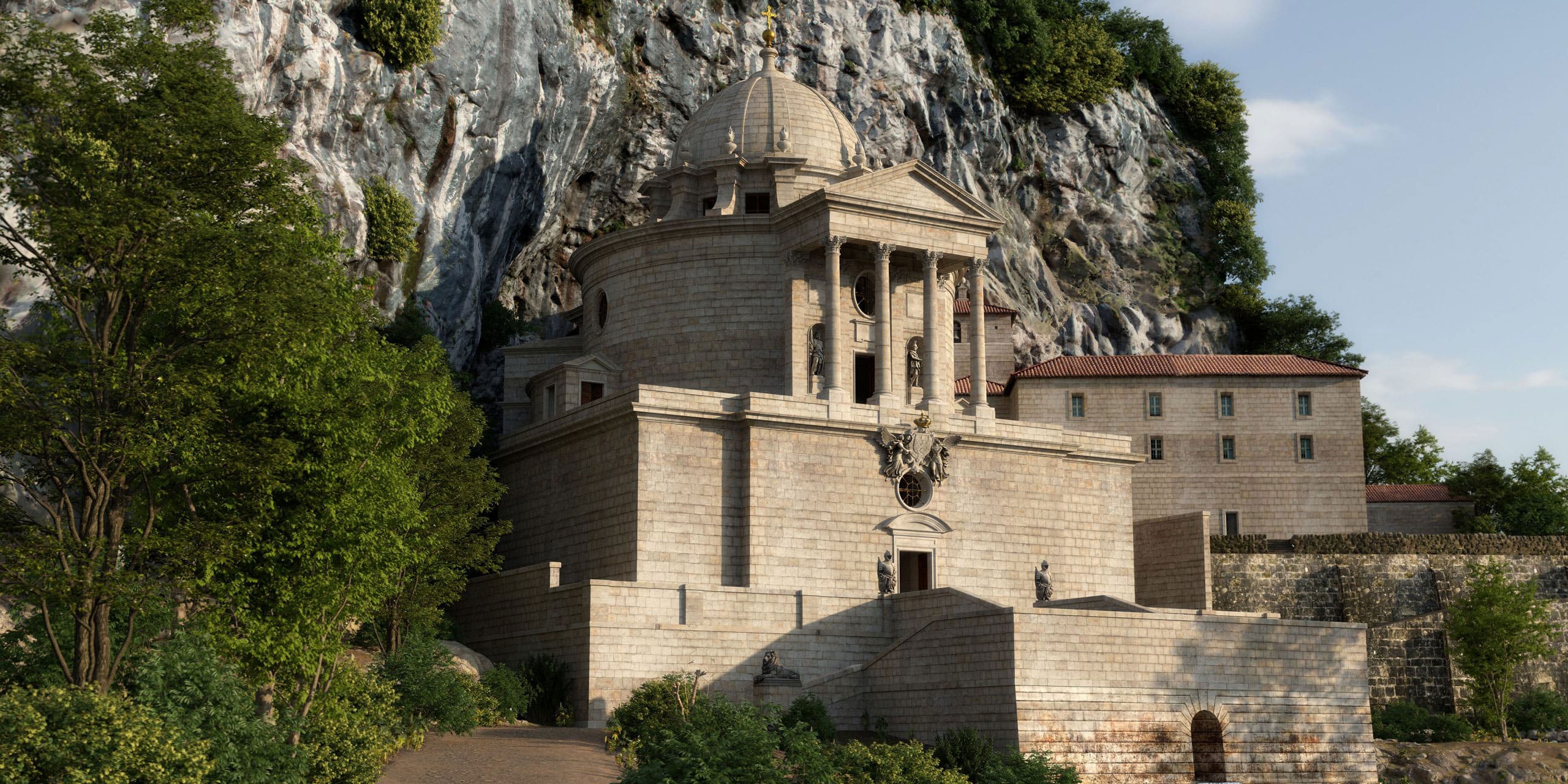 “La destrucción fortuita de la iglesia del Santuario de Nuestra Señora de Covadonga en 1777 extinguió también la imagen tradicional del lugar, donde el viejo templo de madera parecía suspendido en el aire gracias a un ‘milagro divino’”, como describe Vidal de la Madrid Álvarez, catedrático de Historia del Arte de la Universidad de Oviedo. Hasta 1901, no se culminó la basílica neorrománica actual, ideada por el dibujante Roberto Frassinelli y construida en piedra caliza rosa por el arquitecto Federico Aparici. Sin embargo, el santuario de la Santina podría haber sido radicalmente distinto: “revolucionario y original”, como califica Vidal de la Madrid el proyecto que creó Ventura Rodríguez (Ciempozuelos, 1717-Madrid, 1785), el gran arquitecto de la Ilustración.
