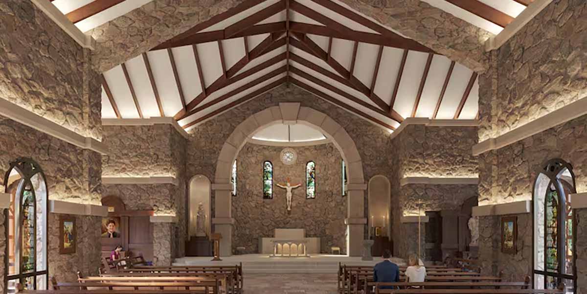 Tendrá una cruz suspendida, iluminada por vitrales que cuentan los momentos de la Pasión de Cristo. También cuenta con atrios y explanadas verdes “que abrazan a la comunidad, invitándola al encuentro con Dios en un entorno natural y armónico”, según cuentan en el proyecto.