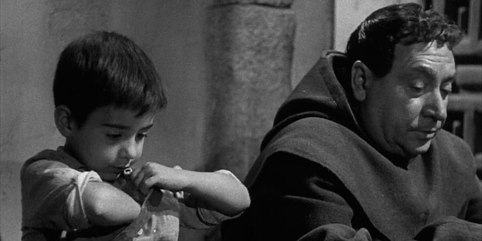 El pequeño Marcelino, con fray Papilla, en un fotograma de la película ‘Marcelino, pan y vino’, de Ladislao Vajda