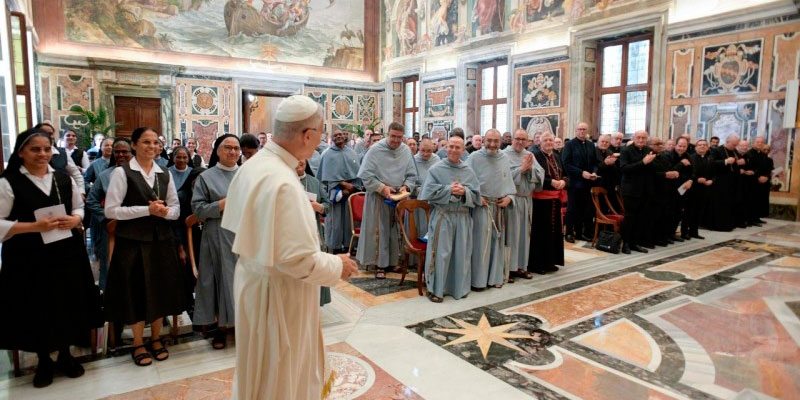“El primero es la importancia, en la vocación religiosa que comparten, de la vida comunitaria como lugar de santificación y fuente de inspiración, testimonio y fortaleza en el apostolado. El Espíritu Santo inspiró a quienes os precedieron a unirse a los hermanos y hermanas que la Providencia puso en su camino, para que en la comunión del bien, la bondad se multiplicara y creciera. Así fue al comienzo de vuestras fundaciones y a lo largo de los siglos, y sigue siéndolo también ahora”, ha señalado.