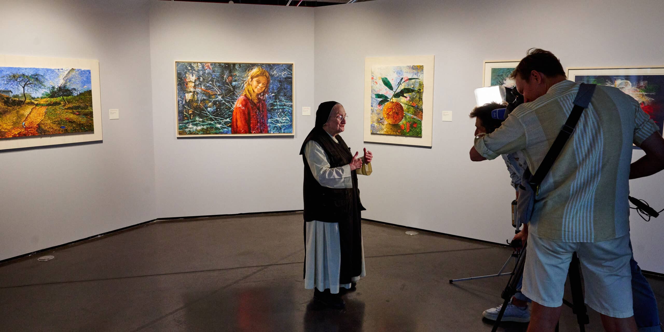 “Tenemos que expresar lo que en cada momento sentimos en el corazón, que es lo que nos da autenticidad e ilusión, no lo prefabricado, porque eso es atar al corazón”. Así se presentaba la madrileña con sus propuestas, enfundada en su hábito y con un chaleco de obra, aliñada con una humildad detrás de la que se esconde una de las pintoras más reputadas de las galerías patrias y extranjeras.