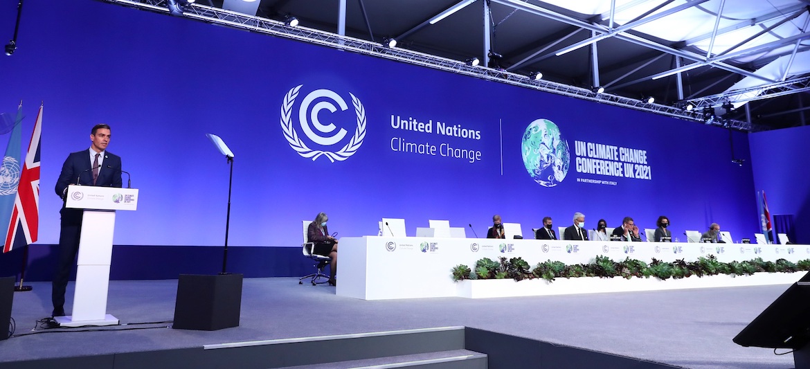 El presidente del Gobierno, Pedro Sánchez, durante la Convención de Naciones Unidas sobre el Cambio Climático (COP26), celebrada en Glasgow (Reino Unido).- EFE/Pool Moncloa/Fernando Calvo