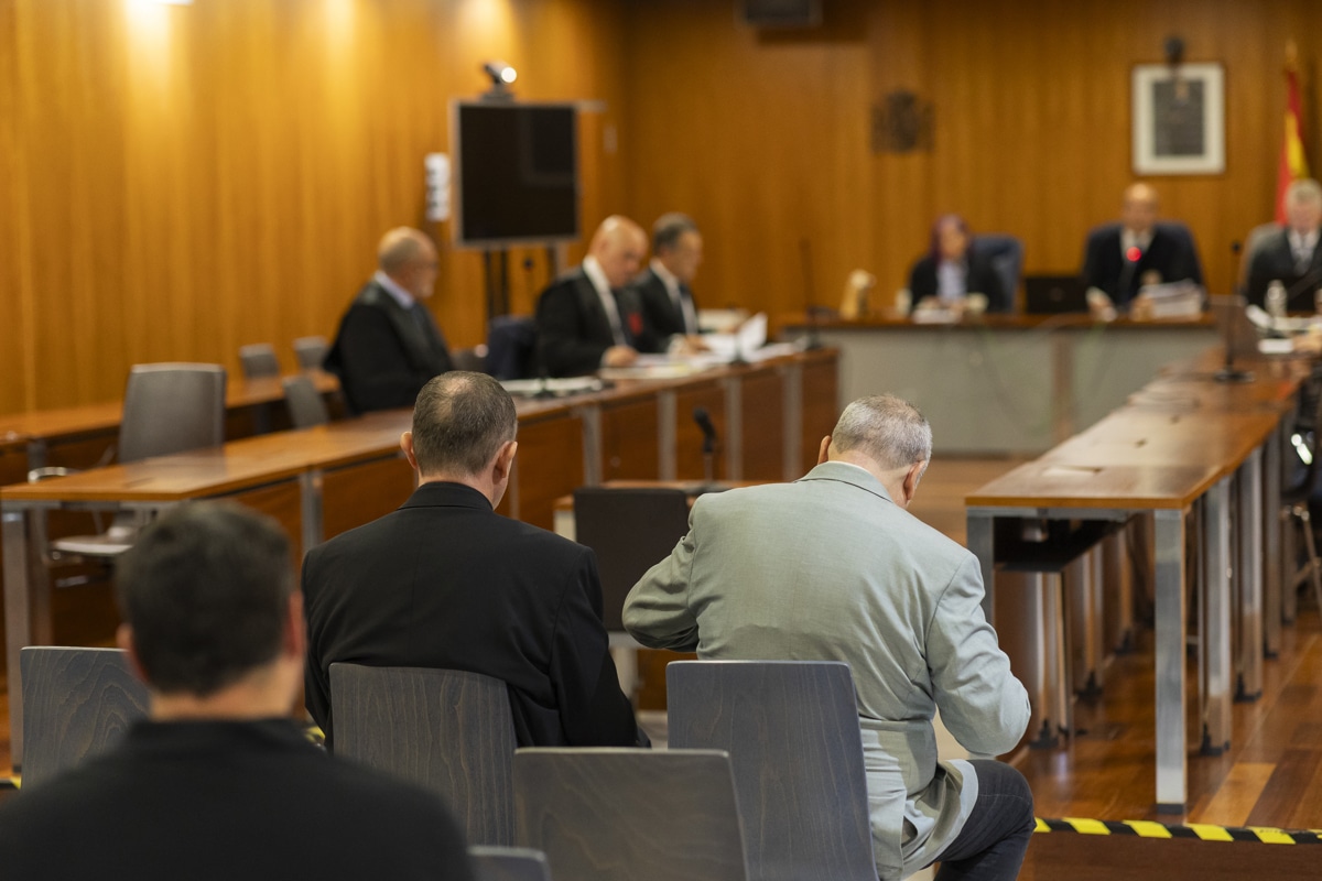 El sacerdote de Barcelona Custodio Ballester (i), en la sala de la Audiencia Provincial de Málaga donde se le juzga por un presunto delito de odio. EFE/Carlos Díaz