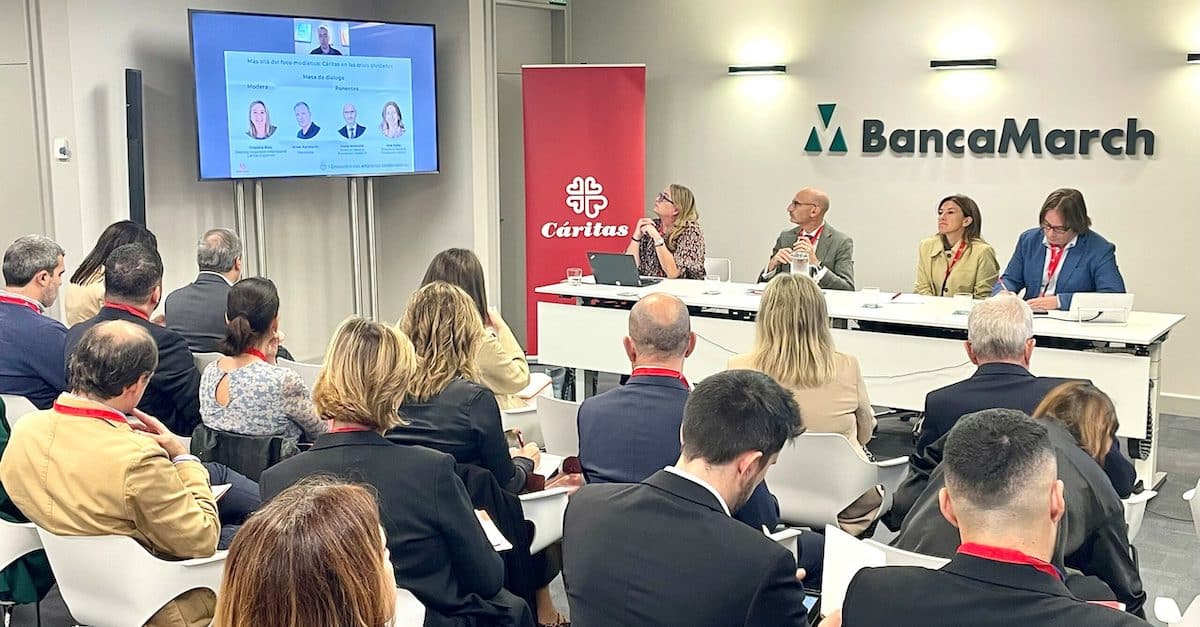 Con el objetivo de animar y fomentar las alianzas estratégicas en el ámbito de la cooperación al desarrollo, Cáritas ha celebrado este martes en la sede de Banca March en Madrid el I Encuentro con empresas colaboradoras. Las crisis olvidadas más allá del foco mediático. La jornada reunió a más de una treintena de compañías y estuvo presidida por el director territorial de la Unidad Grandes Empresas Central de Banca March, César López, y el presidente y secretaria general de Cáritas Española, Manuel Bretón y Natalia Peiro, respectivamente.