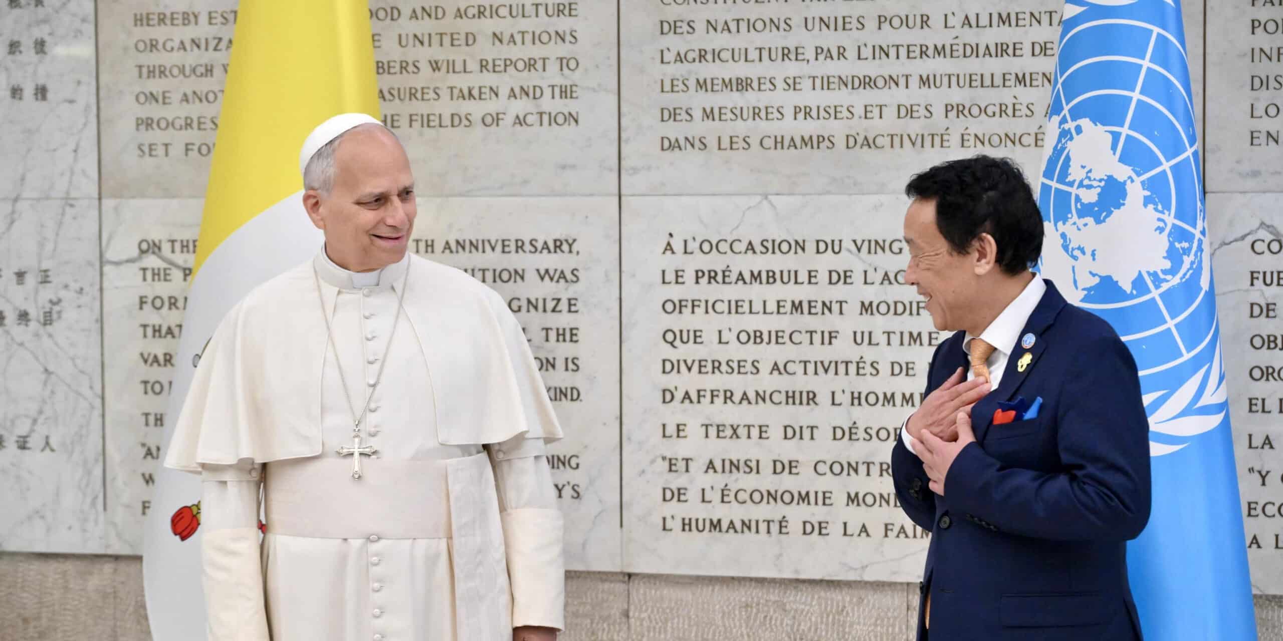 “Si se derrota el hambre, la paz será el terreno fértil del que nazca el bien común de todas las naciones”. Con esta rotundidad se ha presentado León XIV ante la Organización de las Naciones Unidas para la Alimentación y la Agricultura (FAO). El Papa ha visitado hoy, con motivo de la Jornada Mundial de la Alimentación, la sede del organismo, situada en Roma, y ha dirigido un amplio y duro discurso -en español- para poner a la comunidad internacional ante el espejo del ‘hambre cero’ que propugna la Agenda 2030 y que, a cinco años del cumplimiento, es un propósito lejano.