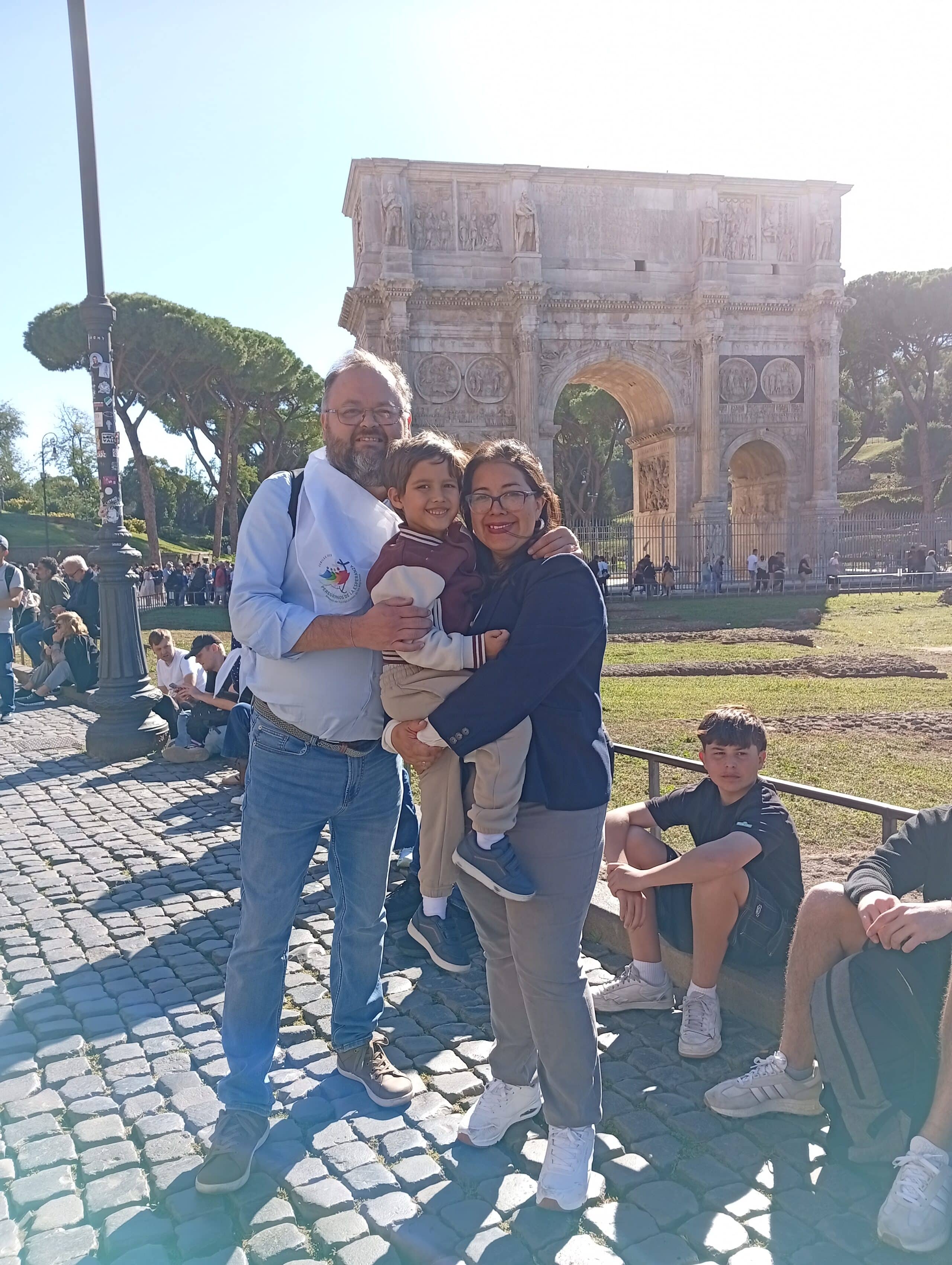 Carlos Nottaro, delegado de Migraciones de Tui-Vigo, con su familia en Roma por el Jubileo de los Migrantes