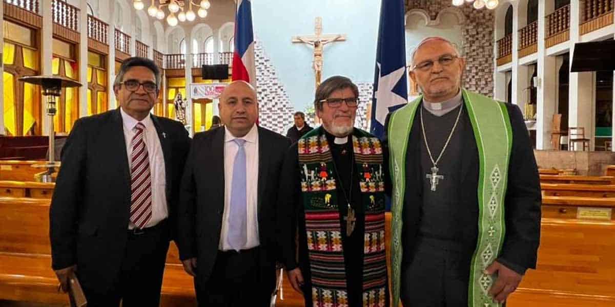 El obispo católico de Temuco, Jorge Concha Cayuqueo; Jaime Medina Cárdenas, superintendente de las Iglesias Metodistas de Chile; el pastor Edgardo Salamanca Mancilla, Iglesia Bautista de Temuco; el obispo Joel Millanguir Ancavil, de la Iglesia Anglicana de Chile, diócesis de La Araucanía; y el obispo Ronny Venegas Montecinos, presidente de la Mesa Ministerial Red Evangélica de La Araucanía, manifestaron su firme respaldo a la tramitación del proyecto de reforma que busca incorporar el reconocimiento constitucional de todos los Pueblos Indígenas de Chile, expresando que están plenamente convencidos de la humanidad, la dignidad y la imperiosa justicia de esta incorporación en la Carta Fundamental del país.