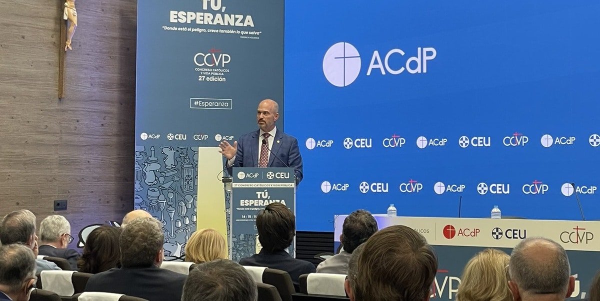 “Occidente, al que ya no llamamos cristiandad, está renunciando a su pasado, dilapidando su presente y abdicando del futuro”. Con esta premisa, el norteamericano Kevin Roberts vertebró la conferencia de apertura del Congreso Católicos y Vida Pública que este año se celebra bajo el lema ‘Tú, Esperanza’. El aula magna de la Universidad CEU San Pablo de Madrid acoge este foro de reflexión organizado por la Asociación Católica de Propagandistas y la Fundación San Pablo CEU que se celebrará hasta el domingo.