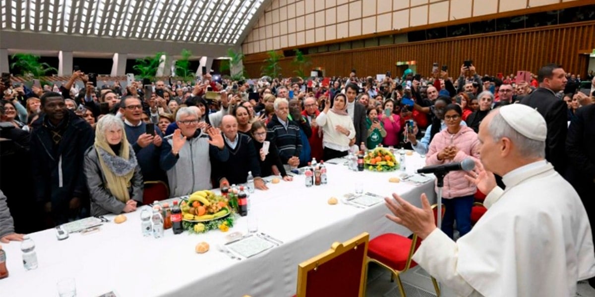 El Papa recordó en sus palabras al bendecir la mesa que esta jornada era muy querida por el papa Francisco. Por lo que lo primero que hizo fue pedir un aplauso por su predecesor. “Este almuerzo que ahora recibimos nos lo ofrece la Providencia y la gran generosidad de la Comunidad de San Vicente, a los paúles, a quienes queremos dar las gracias”, añadió también.