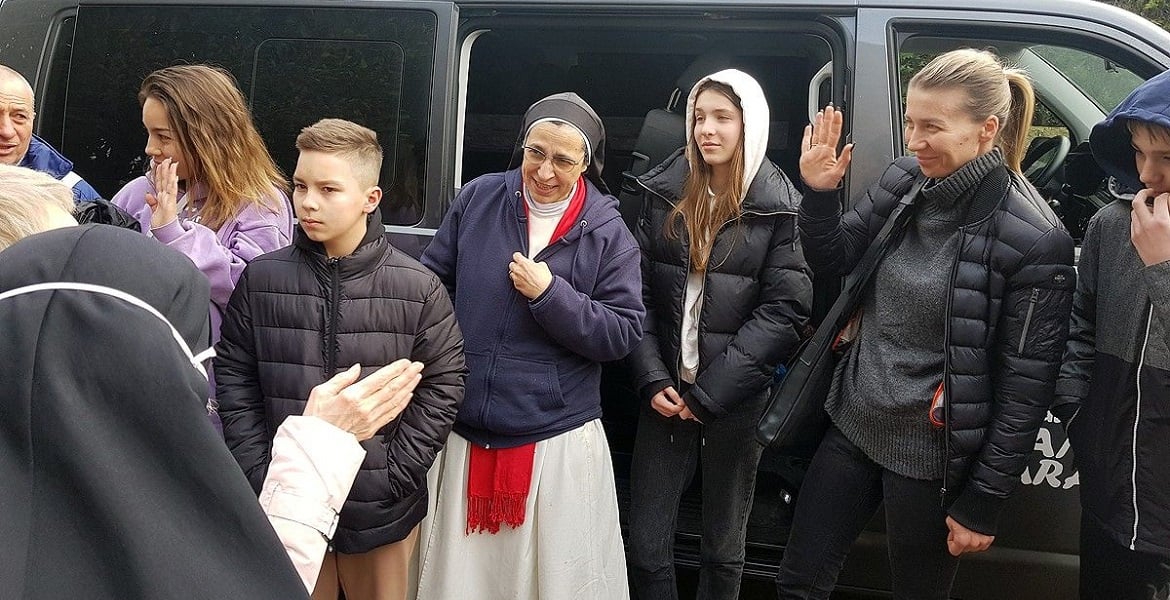 Sor Lucía Caram, con un grupo de niños de Ucrania