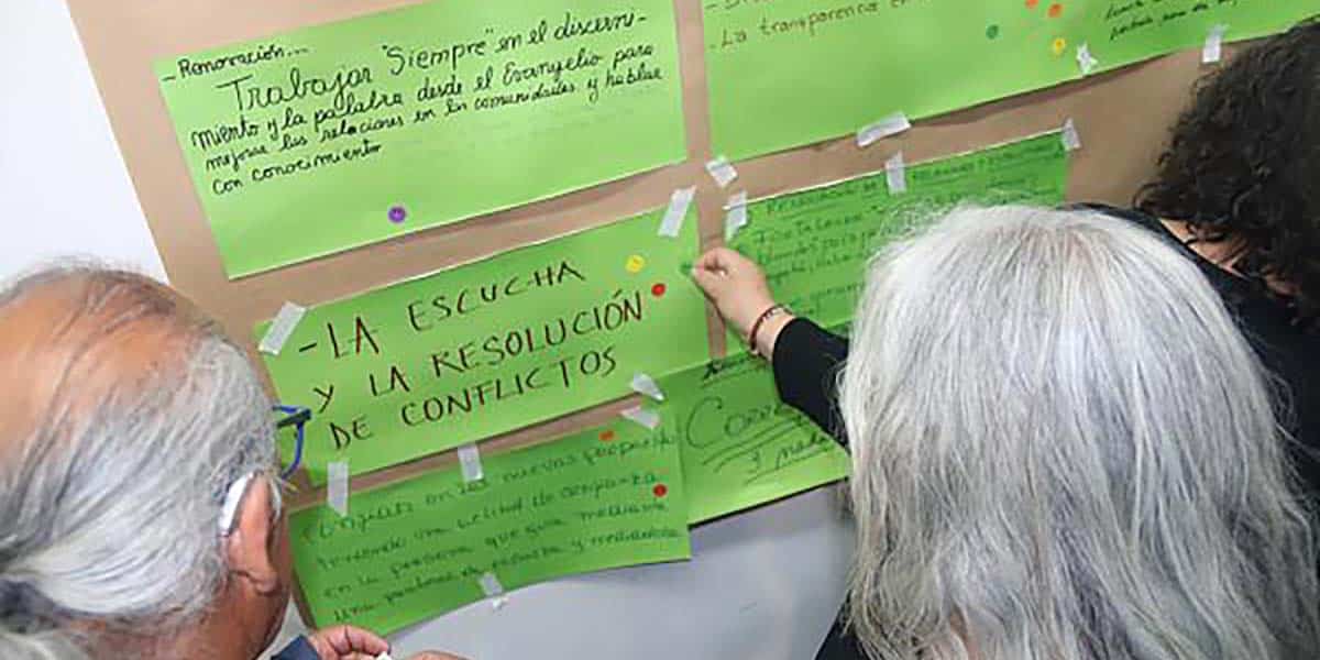 En plenario se compartieron los nuevos desafíos o acentuaciones como base para el proceso de discernimiento pastoral. “Esta dinámica nos permitió descubrir algunas convergencias, en esas convergencias puede haber desafíos nuevos o necesidad de acentuar algunas cosas de nuestro Proyecto Pastoral o alguna cosa nueva que no habíamos visto y que el Espíritu ahora nos habla”, expresó Juan Manuel Cerna, coordinador de la Vicaría Pastoral.