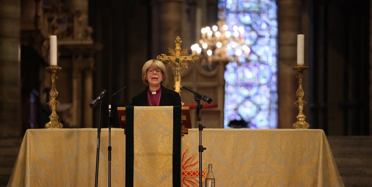 Canterbury (United Kingdom), 03/10/2025.- Dame Sarah Mullally delivers a speech after being named the first woman Archbishop of Canterbury in the Church of England's nearly 500-year history at Canterbury Cathedral in Canterbury, Britain, 03 October 2025. The Archbishop of Canterbury is the head of the Church of England and the spiritual leader of the worldwide Anglican faith. Mullally becomes the 106th Archbishop of Canterbury following the resignation of her predecessor, Justin Welby, in November 2024 over his failure to report prolific child abuser John Smyth. (Reino Unido) EFE/EPA/NEIL HALL