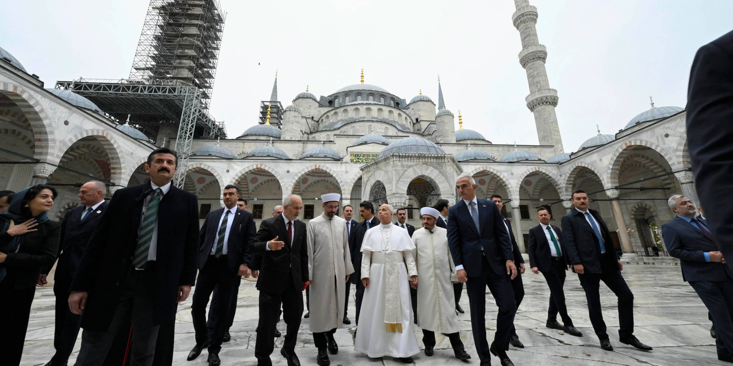 La visita de León XIV ha sido rápida –ha durado apenas media hora-. Él, al contrario que sus dos predecesores, no ha rezado en el templo musulmán. Invitado por el Muftí a orar, ha respondido: “No, observo”. Esto no resta importancia a un gesto que quiere significar el respeto hacia el islam del que la Mezquita Azul es, sin duda, uno de sus monumentos mas emblemáticos y suntuosos.