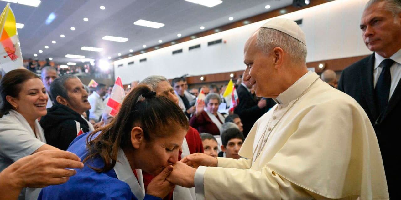 El papa León XIV en su visita al Hospital de la Croix, en Líbano
