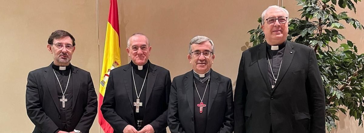 El presidente de la Conferencia Episcopal, Luis Argüello, junto al vicepresidente, José Cobo, y el secretario general, Francisco César García Magán, han recibido este 5 de diciembre al nuevo nuncio apostólico en España, Piero Pioppo.