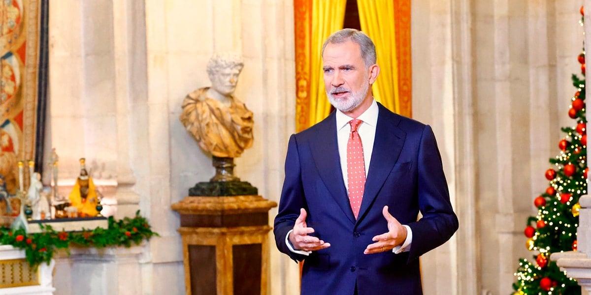 Desde el Salón de Columnas del Palacio Real, uno de los más solemnes junto al del trono, el Rey recordó que en ese mismo espacio se firmó hace 40 años la adhesión de España a las Comunidades Europeas. Desde allí, hizo una llamada a la convivencia y alertó de algunas de sus amenazas. Además, como es habitual, ha concluido su alocución deseando “Feliz Navidad a todos. Eguberri on, Bon Nadal, Boas Festas”, la fórmula que usa habitualmente en este día, empleando las lenguas cooficiales.
