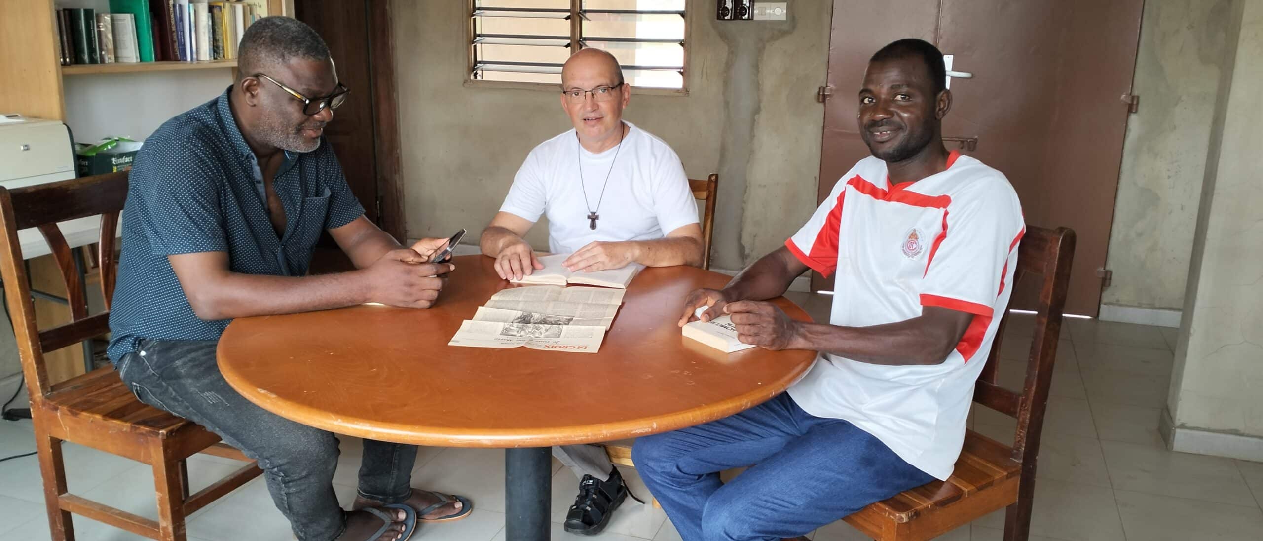 El tercer miembro del grupo es el burkinés Benjamin Ouedraogo. Tras hacer meses atrás sus votos perpetuos y ser ordenado diácono en su país, fue enviado a esta misión togolesa para realizar sus prácticas diaconales. “Una nueva comunidad, una nueva experiencia”, celebra. Pleno de ilusión, recuerda cómo empezó todo: “Llegué el lunes 1 de septiembre, a las cuatro de la madrugada. Los dos hermanos me recibieron con alegría y cercanía. Tras estos meses de estancia, estoy viviendo una hermosa experiencia en dos dimensiones, que se desarrolla entre la vida comunitaria y el apostolado”.