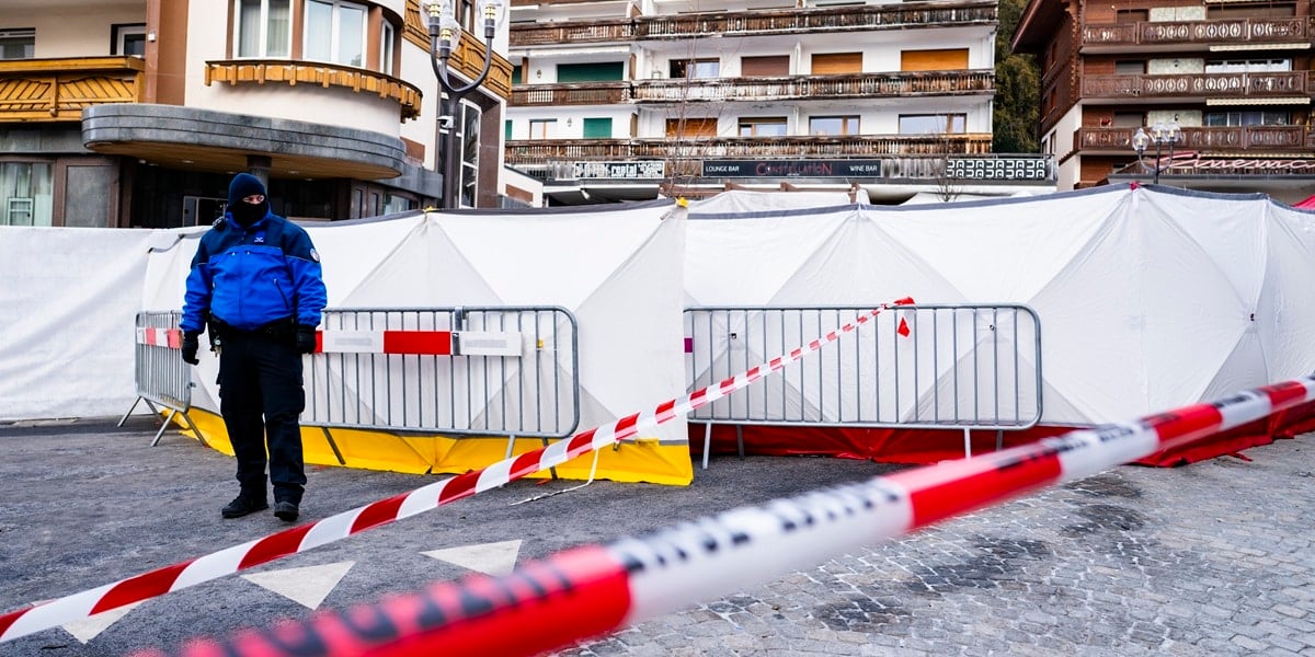 Zona acordonada en la localidad suiza de Crans-Montana tras el incendio