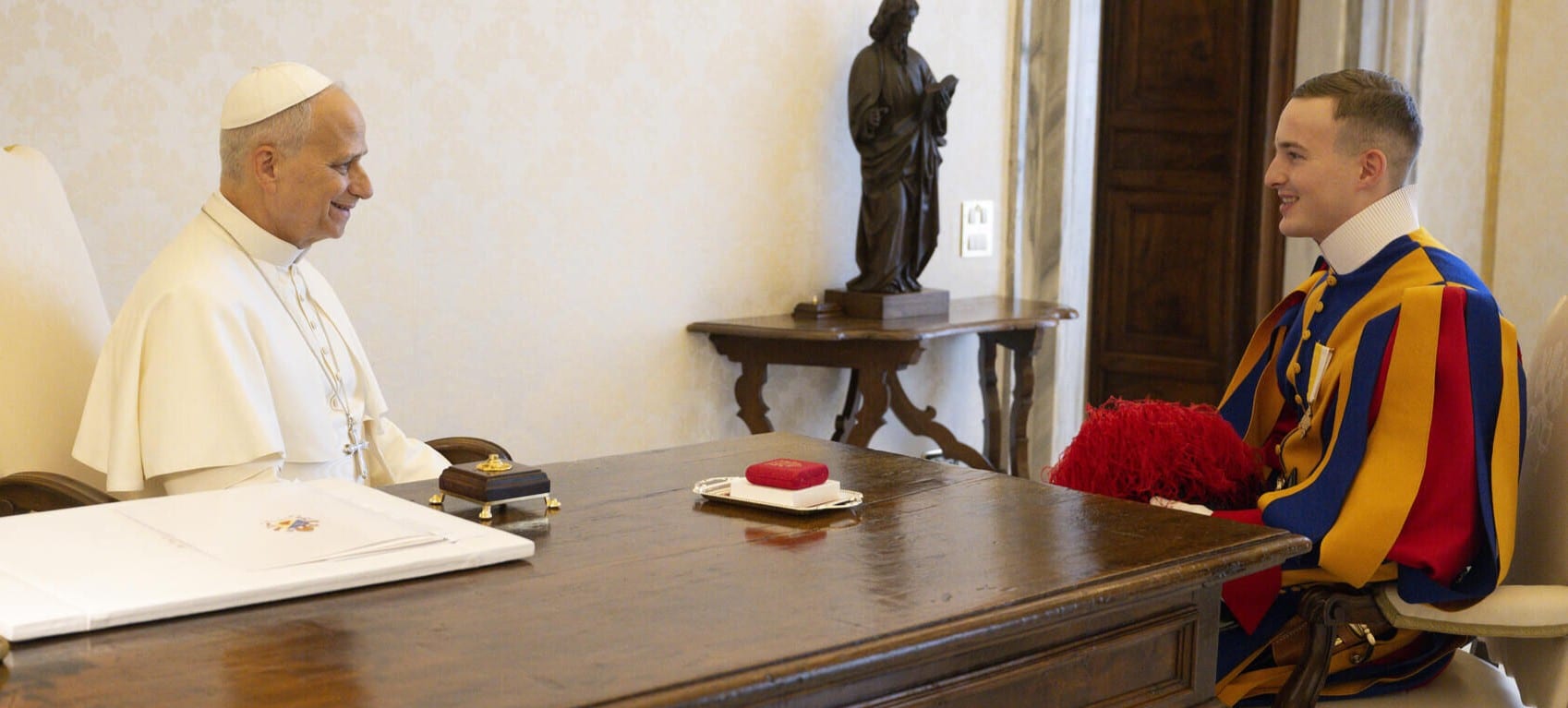 En definitiva, los guardias suizos son como estatuas… a las que jamás vemos hablar. Una situación de puertas hacia fuera cuya intimidad ha naturalizado Robin Schmid, quien acaba de compartir en sus redes sociales una fotografía nada habitual: en ella, aparece sentado junto a León XIV, charlando sonrientes y de modo distendido.