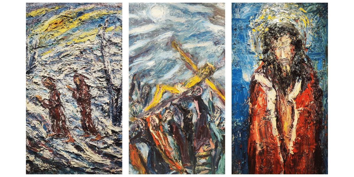 Se trata de un recorrido desde la Pasión a la luz: lienzos del vía crucis, esculturas en acero y pinturas de paisajes y ciudades