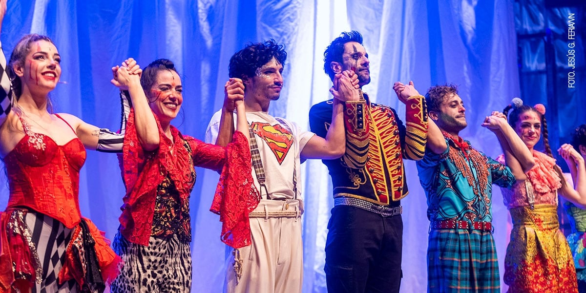 Lo que nació como una tesis doctoral de dos estudiantes de Bellas Artes, como un experimento académico de teatro experimental, no solo sobrevive, sino que se rejuvenece casi cinco décadas después gracias a diez actores, seis músicos que tocan en directo y el resto del equipo que suman para hacer suyas las parábolas del Evangelio de Mateo, haciendo lo que Jesús resolvía con soltura, una adaptación curricular acorde con los signos de los tiempos. Durante las más de dos horas se enhebran los diálogos con la música, juegos, mimos, marionetas… Y, todo, con algo más que la dirección de Antonio Banderas bajo un libreto de Emilio Aragón.