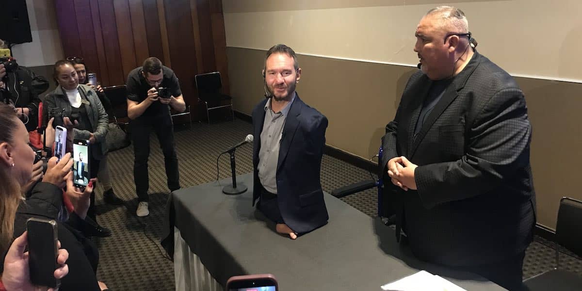 Por otro lado, en el tiempo de preguntas por parte de los reporteros, Nick compartió que a los 10 años intentó suicidarse y cuestionó a Dios: “si tú me amas ¿dónde estás? Sáname, dame brazos y piernas”.
