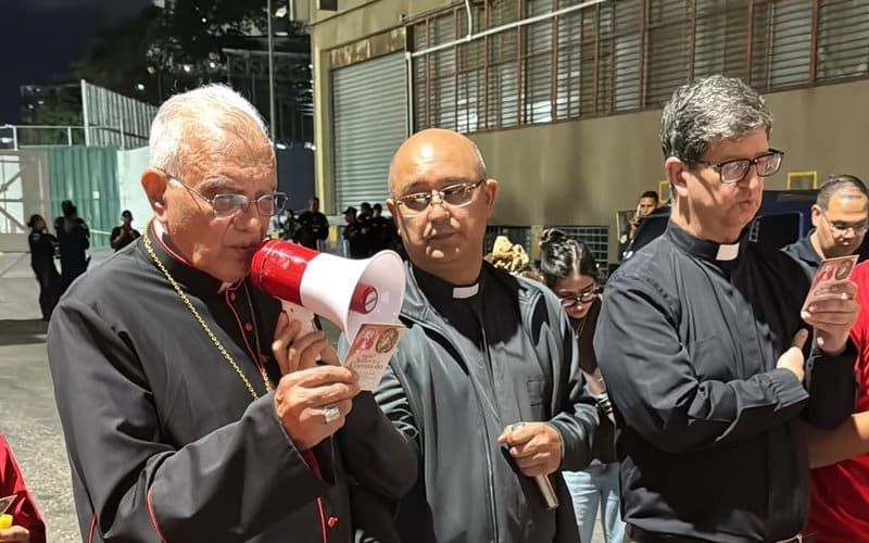 Acompañado por el rector de la Universidad Católica Andrés Bello (UCAB), Arturo Peraza, el purpurado señaló que los familiares de estos presos políticos cuentan con “la fuerza del Evangelio” pese a no tener “oro ni plata”.