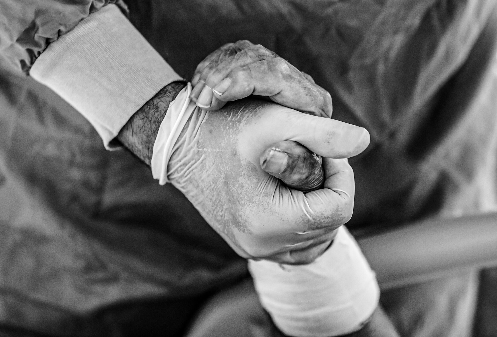 -FOTODELDIA- ESTAMBUL (TURQUÍA) 09/12/2020.- Un médico sostiene la mano de un paciente con coronavirus en la UCI del hospital Cemil Tascioglu en Estambul, Turquía. La curva de fallecimientos por covid-19 sigue subiendo en Turquía con 211 muertes, ocho más que el lunes, mientras se registraron casi 33.198 nuevos contagios, según el Ministerio de Salud turco. EFE/ Sedat Suna