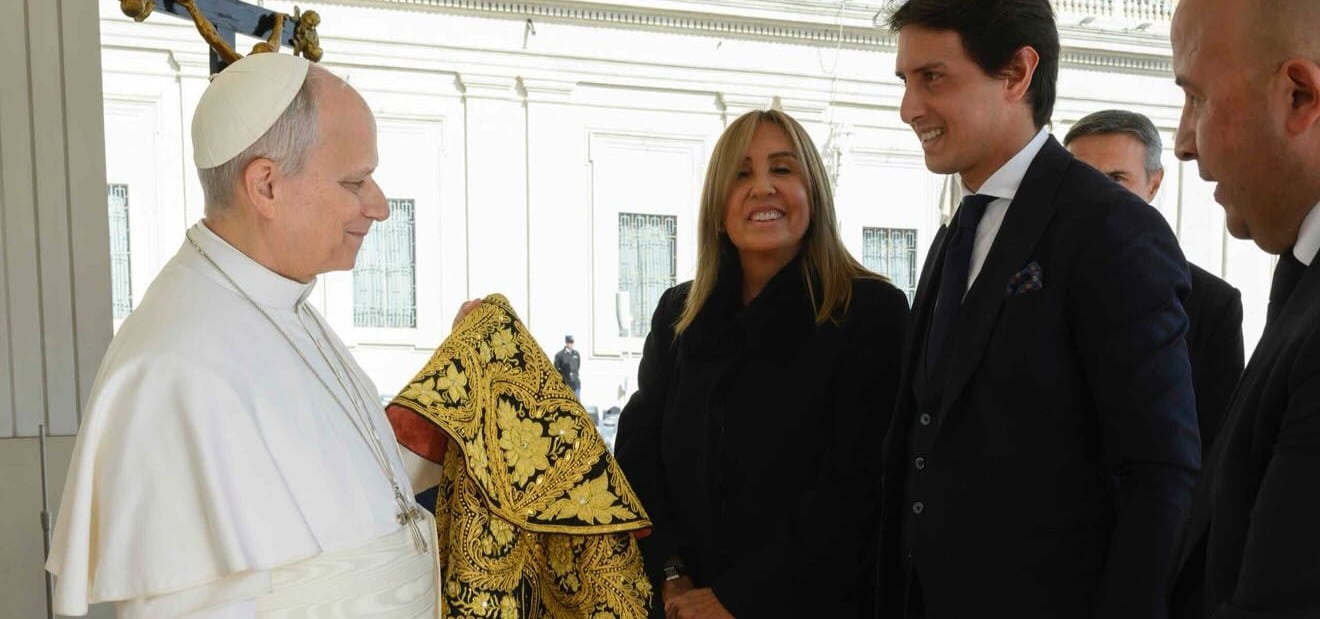 El torero le regala al Papa un capote de paseo con la imagen del Señor de los Milagros, “símbolo de fe, tradición y unión entre culturas”