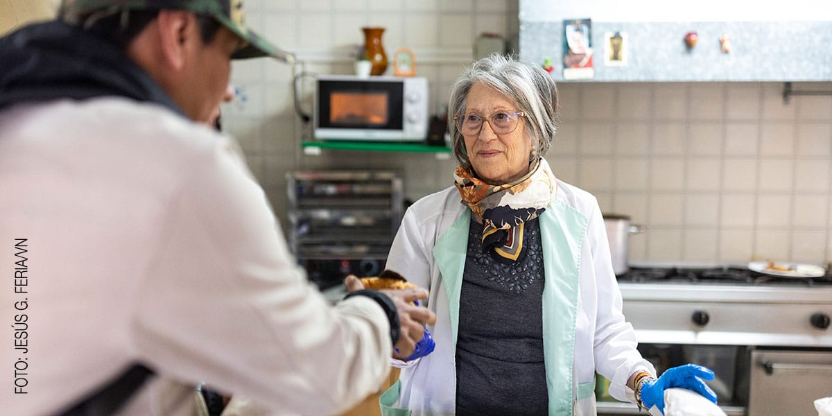 Recuerda que, cuando ella empezó, el comedor atendía a realidades durísimas: “El SIDA, tuberculosos, drogas…”. Ahora, sin embargo, han cambiado los perfiles de quienes acuden al comedor: llegan muchos migrantes y personas sin trabajo. Pero el método sigue siendo el mismo: permanencia, escucha, una mesa bendecida –que no falta ningún día–, y el convencimiento de que el otro no es un número. “Nosotros les recogemos. Desde chicos que han caído en las drogas hasta chicas prostitutas… los pobres entre los más pobres”, indica. Sin embargo, y a pesar de todo el bien que hacen, Loli está convencida de saber por qué tantos jubilados acaban en servicios así: “No es tanto lo que hacemos para lo que recibimos, porque recibimos mucho más que damos”.