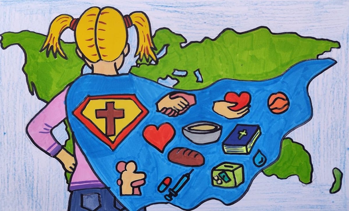 El ganador de la tercera categoría del concurso de Infancia Misionera, la de los mayores (de 5º a 6º de Primaria) es de Zamora, y se llama Jerome Esteban Casalderrey. “En el dibujo he querido mostrar que todos los misioneros son especiales, que ellos también tienen súper poderes, y que todos podemos ser misioneros si nos lo proponemos”, explica. “Con nuestras manos, pies, cabeza, un corazón y la ayuda del Espíritu Santo, podemos ser un buen misionero”.