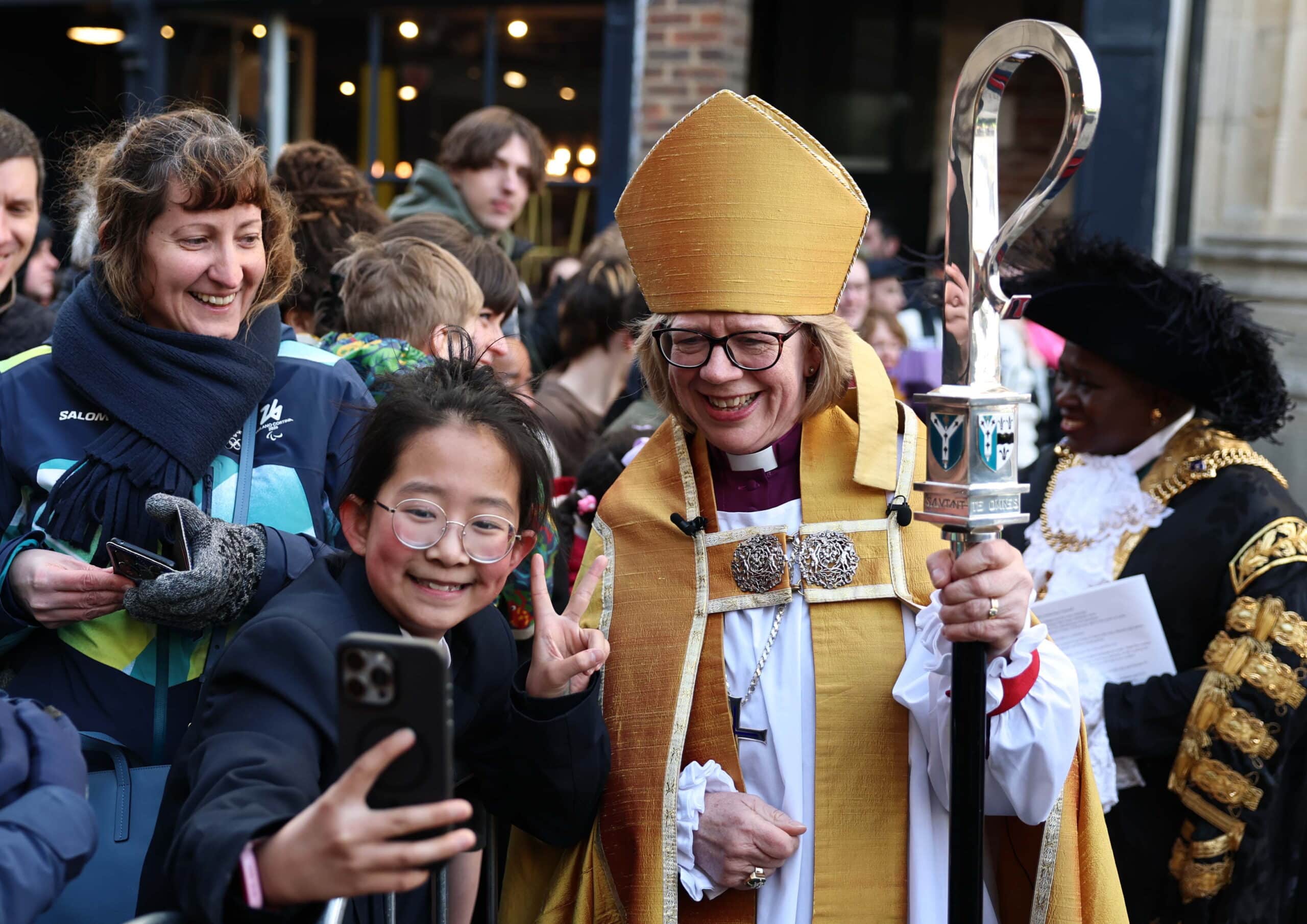 Como dicta la tradición, antes de la ceremonia, la nueva pastora de Canterbury peregrinó a pie y acompañada por un grupo de fieles desde la Catedral de San Pablo, en Londres, hasta la Catedral de Sa Agustín, en su nueva sede episcopal. La marcha duró seis días y finalizó este domingo 22 tras recorrer 140 kilómetros.