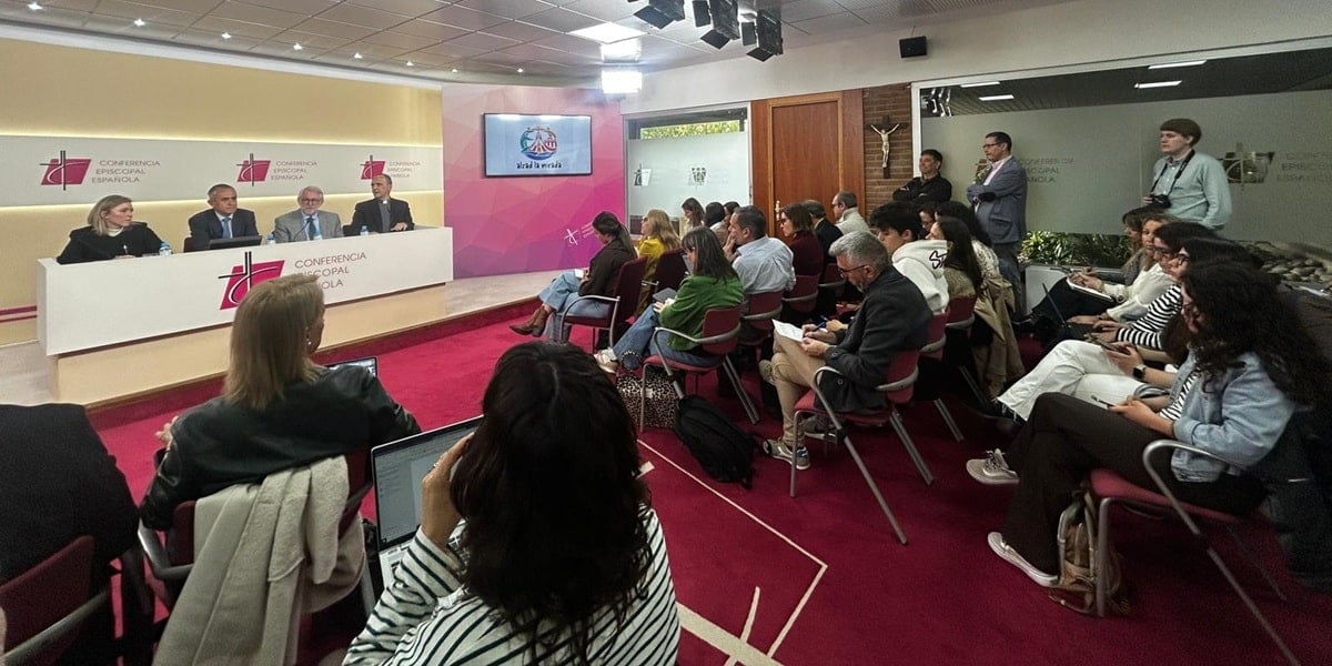 El viaje de León XIV a España ya tiene logotipo. Y se dio a conocer esta mañana en una rueda de prensa en la sede de la Conferencia Episcopal Española. En el encuentro con los medios de comunicación, tomaron la palabra Yago de la Cierva y Fernando Giménez Barriocanal, coordinadores de la visita de León XIV a España; Sara de la Torre, delegada episcopal de Medios del arzobispado de Madrid, y Josetxo Vera, director de la Oficina de Información de la CEE.