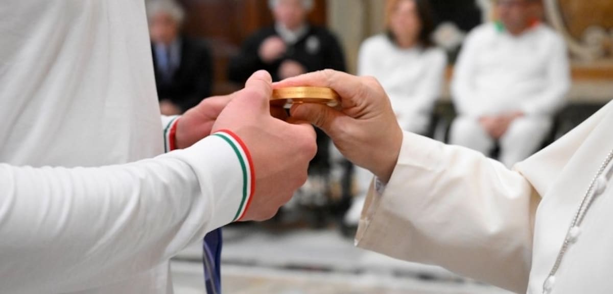 León XIV medalla olímpica. Foto: Vatican Media