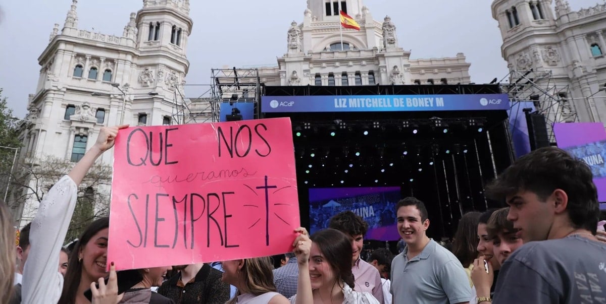 “Rezo por vosotros, os bendigo y os espero. Si Dios quiere, nos veremos en junio”. Con estas palabras, León XIV convoca a los españoles a participar en las actividades del viaje que tiene programado del 6 al 12 de junio con destino Madrid, Barcelona, Gran Canaria y Tenerife. La Plaza de Cibeles acogió por cuarto año consecutivo este encuentro organizado por la Asociación Católica de Propagandistas y la Fundación San Pablo CEU en su edición más internacional. Y es que, junto al grupo católico Hakuna, se subieron al escenario dos míticas formaciones del panorama internacional: los Gipsy Kings y Boney M.