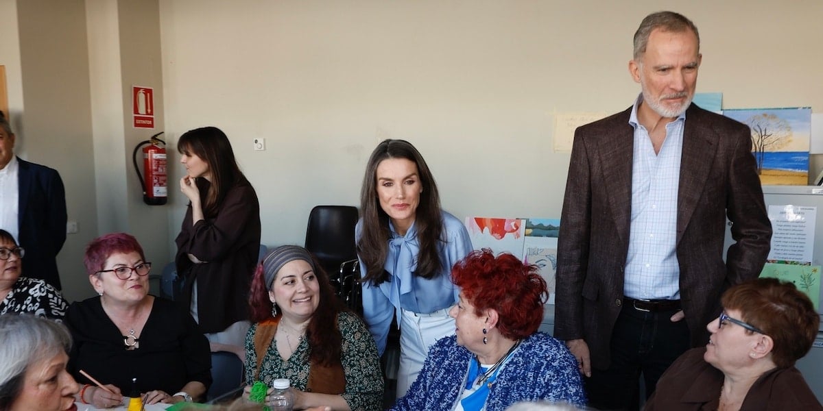 Los Reyes durante la visita al aula de arteterapia del Espacio Mujer Madrid. Foto: Casa Real
