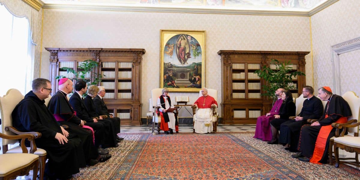 León XIV ha recibido, este 27 de abril, en el Vaticano a la arzobispa de Canterbury, Sarah Mullally, la líder de la Iglesia de Inglaterra. La cara visible, con el permiso del Rey, de la Comunión Anglicana iba acompañada por el Richard Moth, arzobispo de Westminster; Anthony Ball, director del Centro Anglicano de Roma; Matthias Grebe, asesor nacional para las relaciones ecuménicas; y la canóniga Margaret Cave, directora del Ministerio Episcopal.